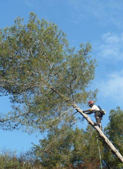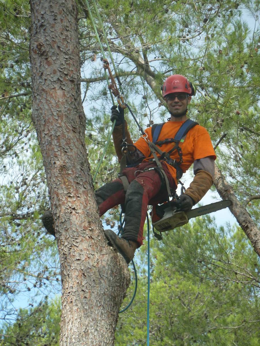 Son équipe de 6 salariés réalise des abattages délicats par démontage ainsi que des travaux de taille de sécurisation et de formation.