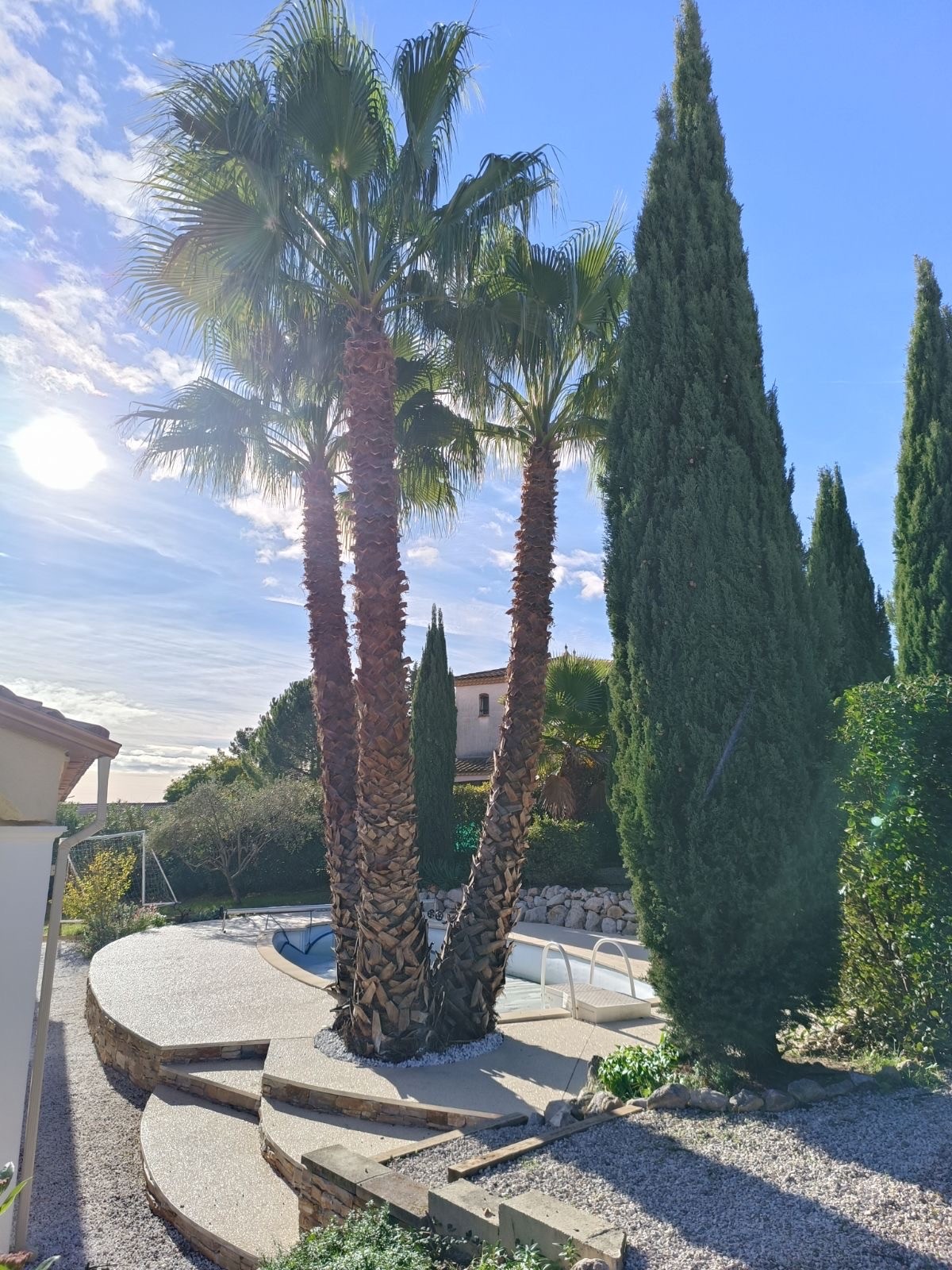 En cette mi-novembre, nous avons procédé au nettoyage de trois palmiers Kamérops qui se situaient au-dessus d’une piscine.